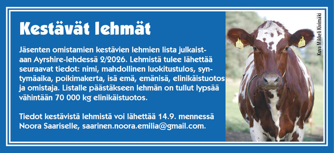 Vuoden Ayrshirekasvattaja ja Vuoden Ayrshireaktiivi -palkitut