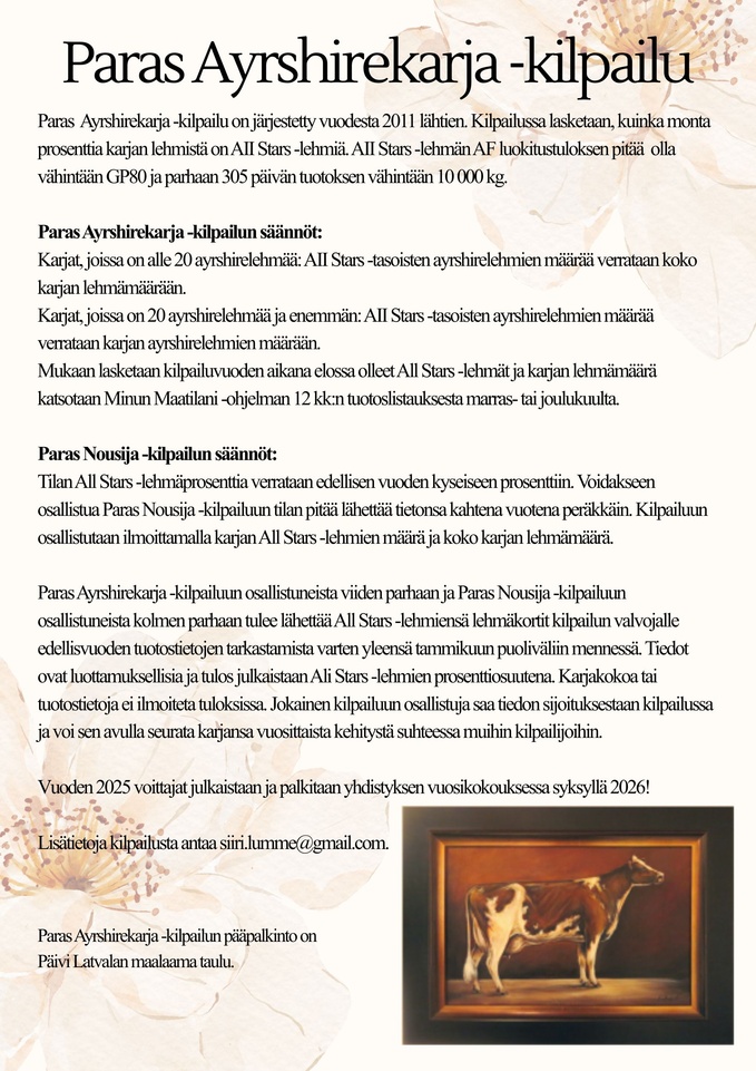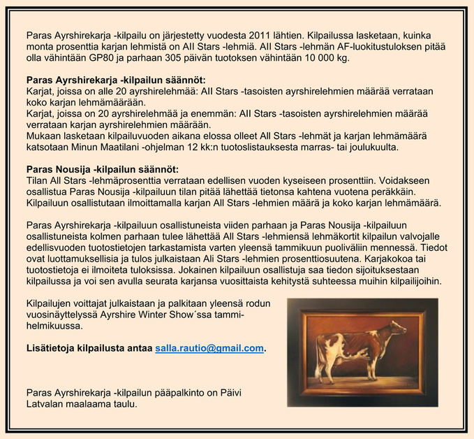 Paras Ayrshirekarja ja Paras Nousija -kilpailujen palkitut: